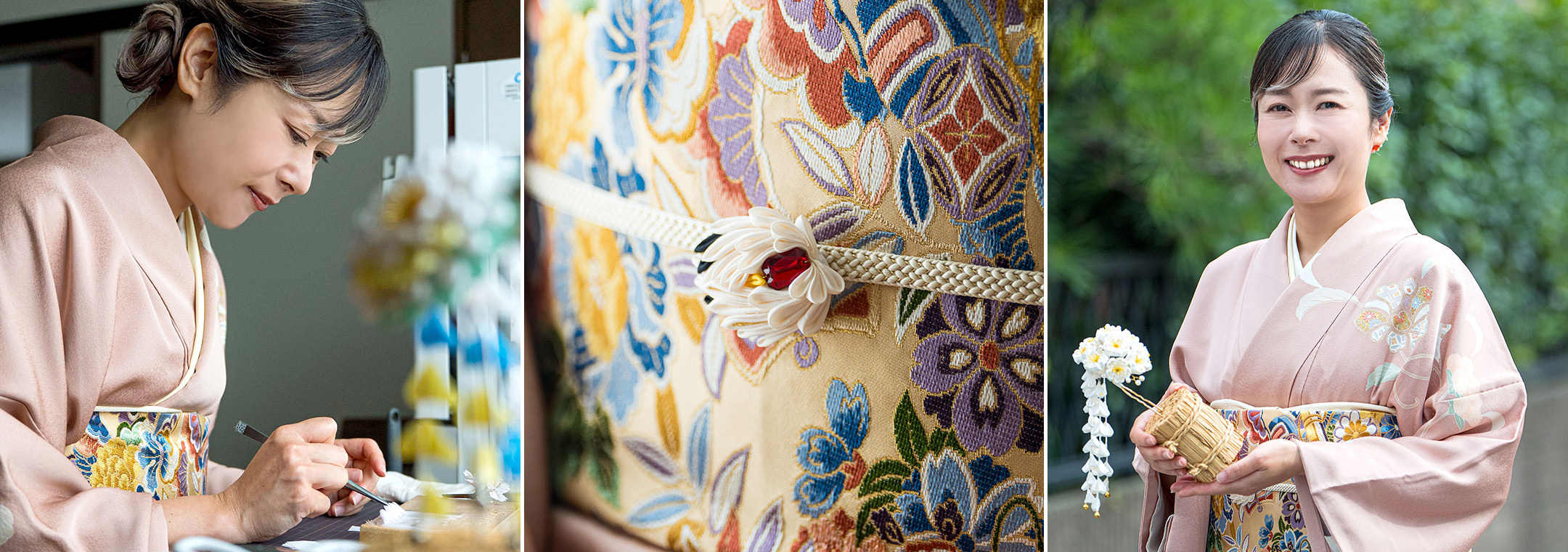 振り返れば、最初の10年は技術をいかに高めるかに邁進した日々。まさに独学の極みですね。でも、つまみ細工を広く伝えていきたい、技術を大切に守っていきたい、その一念でした。次の10年は、和服店をやめて、職人に専心。