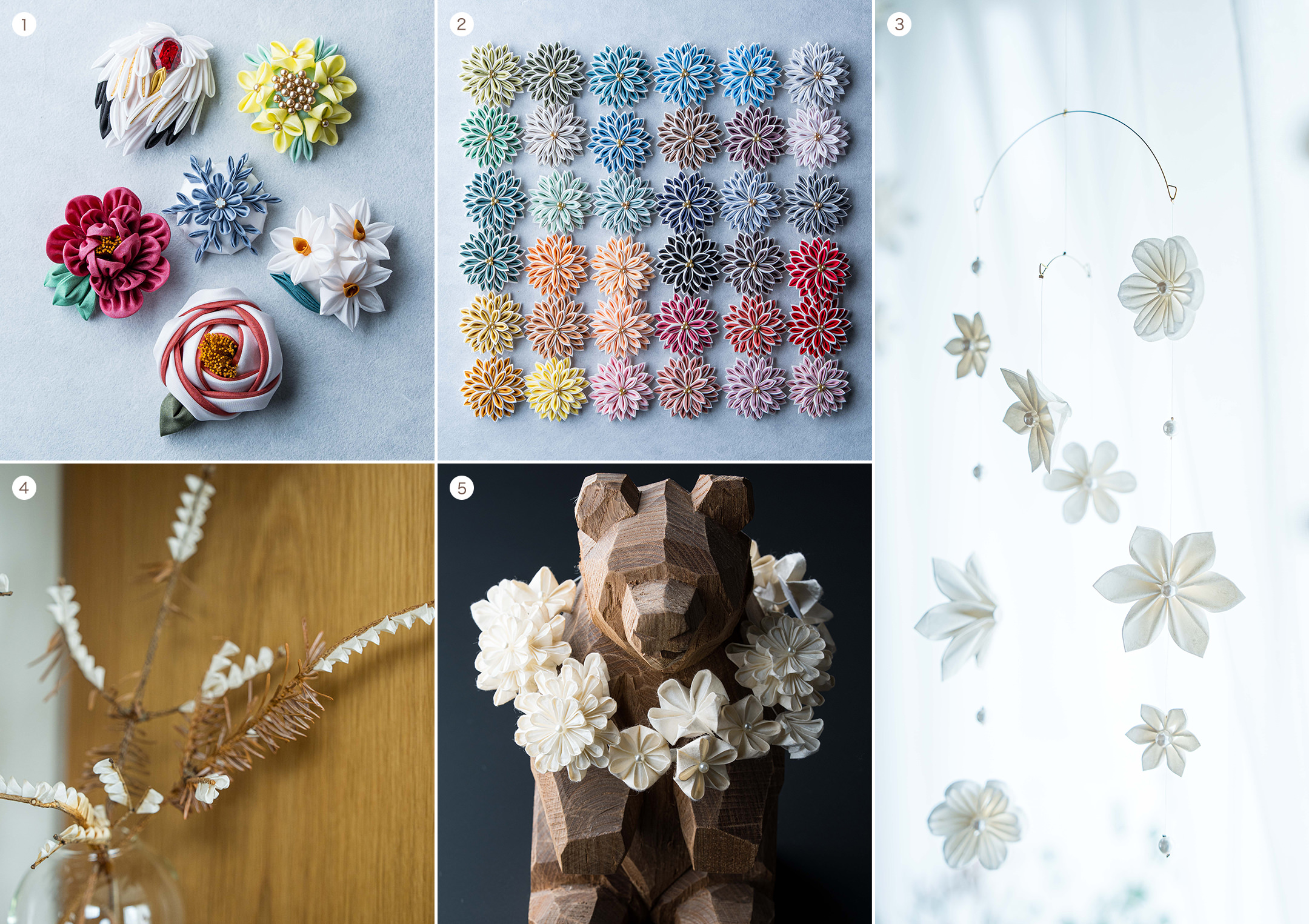 現在は、チームで商品を作りながら、普及に努めています。松戸市の教育委員会からの依頼で小学生向けのワークショップを開催したり、和紙のアロマディフューザーやアート作品など、つまみ細工の新しい世界にもチャレンジを始めています。時代のニーズに合った作品を作り続けていけば、伝統工芸の技術が失われることはないと信じます。